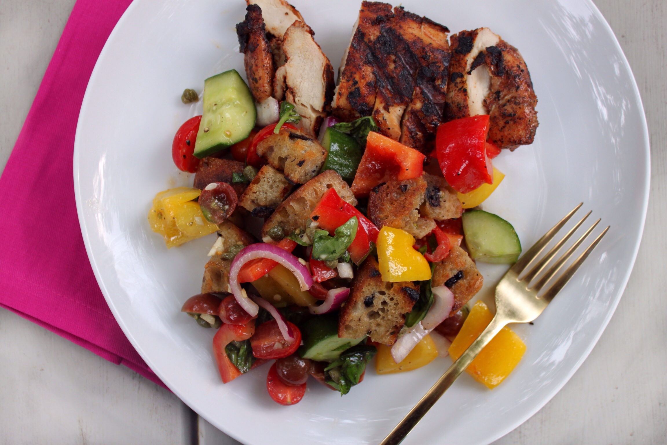 So here’s the dynamic duo – Ina Garten’s Panzanella Salad. Make it while summer produce is fresh and burn those carbs off in the garden afterward.