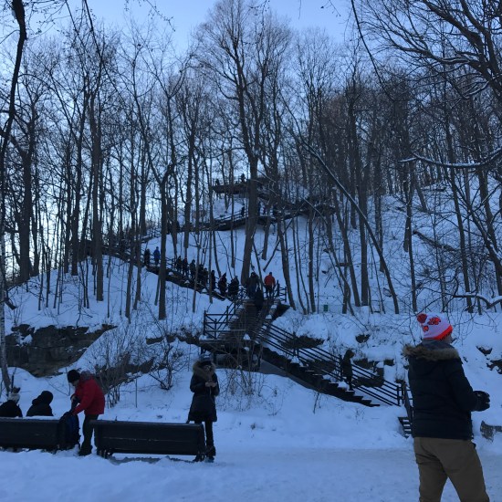 January 1st we lucked out to meet Ronald the Uber driver who gave us the insiders tricks to ordering lunch at Schwartz’s deli. After a short line, we indulged in the “medium” pastrami sandwiches (medium is fat content not size!), fries and black cherry sodas. Lunch prepared us for an impromptu hike up Parc Mont Royal the most beautiful Olmsted designed city park. We joined hundreds of local humans and dogs on sleds, skis and foot move up the mountain for an amazing view of the city. After all the food, a 10 mile walk was certainly needed! Especially since we ended the night at the most fun dinner in Chinatown at Chez Maxim Oriental!