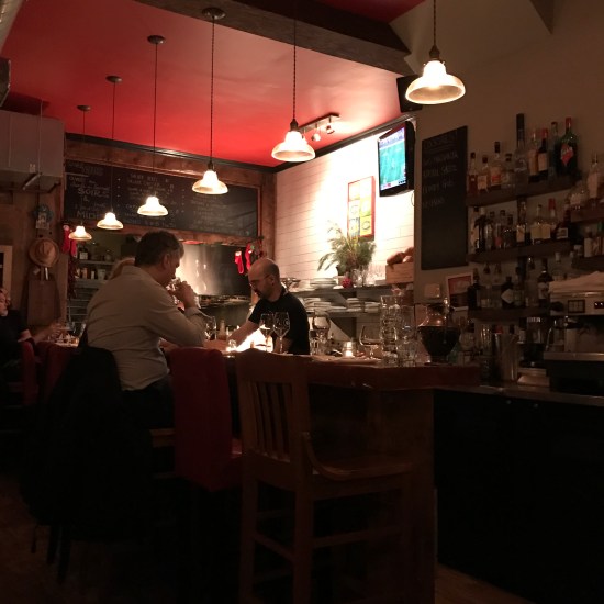 Our first dinner and drinks were at Barroco in Old Montreal. Bourbon and rye cocktails were followed by French red wine, braised short ribs braised in maple syrup (it’s Canada) and balsamic vinegar and a seafood rich paella. The staff couldn’t have been more friendly – it was the perfect meal to begin the food adventure.