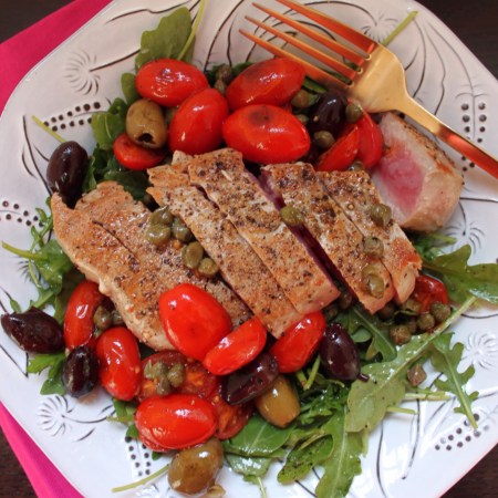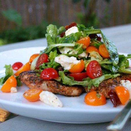 Triple Tomato Chicken Paillard Salad