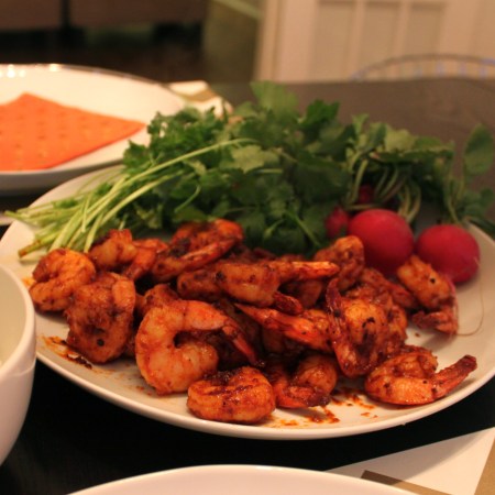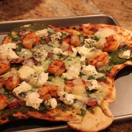 Grilled Pesto, Shrimp and Lemon Goat Cheese Pizza